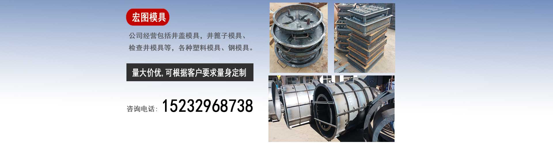 保定宏圖模具科技有限公司專業(yè)生產(chǎn)井蓋模具,檢查井模具,隔離墩模具質(zhì)優(yōu)價廉。我們生產(chǎn)的模具產(chǎn)品質(zhì)量強(qiáng)勁、經(jīng)久耐用。是您值得信任的選擇。我們堅(jiān)持以客戶第一位原則。以客戶需求為我們的發(fā)展方向。不斷地提高擴(kuò)大我們的生產(chǎn)范圍、生產(chǎn)能力,滿足客戶的對模具的一切要求,隨時保持與市場的無縫鏈接。真正的做到市場上的“需要我們有什么、客戶需要什么我們滿足什么”。我廠生產(chǎn)的模具具有光亮度高、韌性強(qiáng)、不變形、易脫模、破損率低等特點(diǎn),產(chǎn)品銷往全國各地,并受到了廠家的青睞和好評。